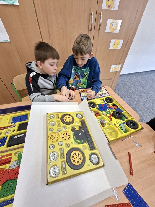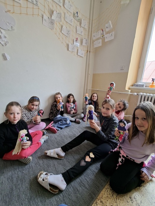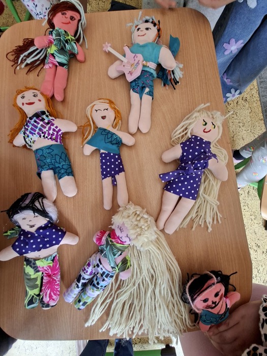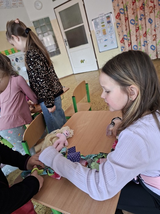 V družině si děvčata udělala panenky. Moc se jim povedly. Kluci si mezitím stavěli ze stavebnice Merkur.